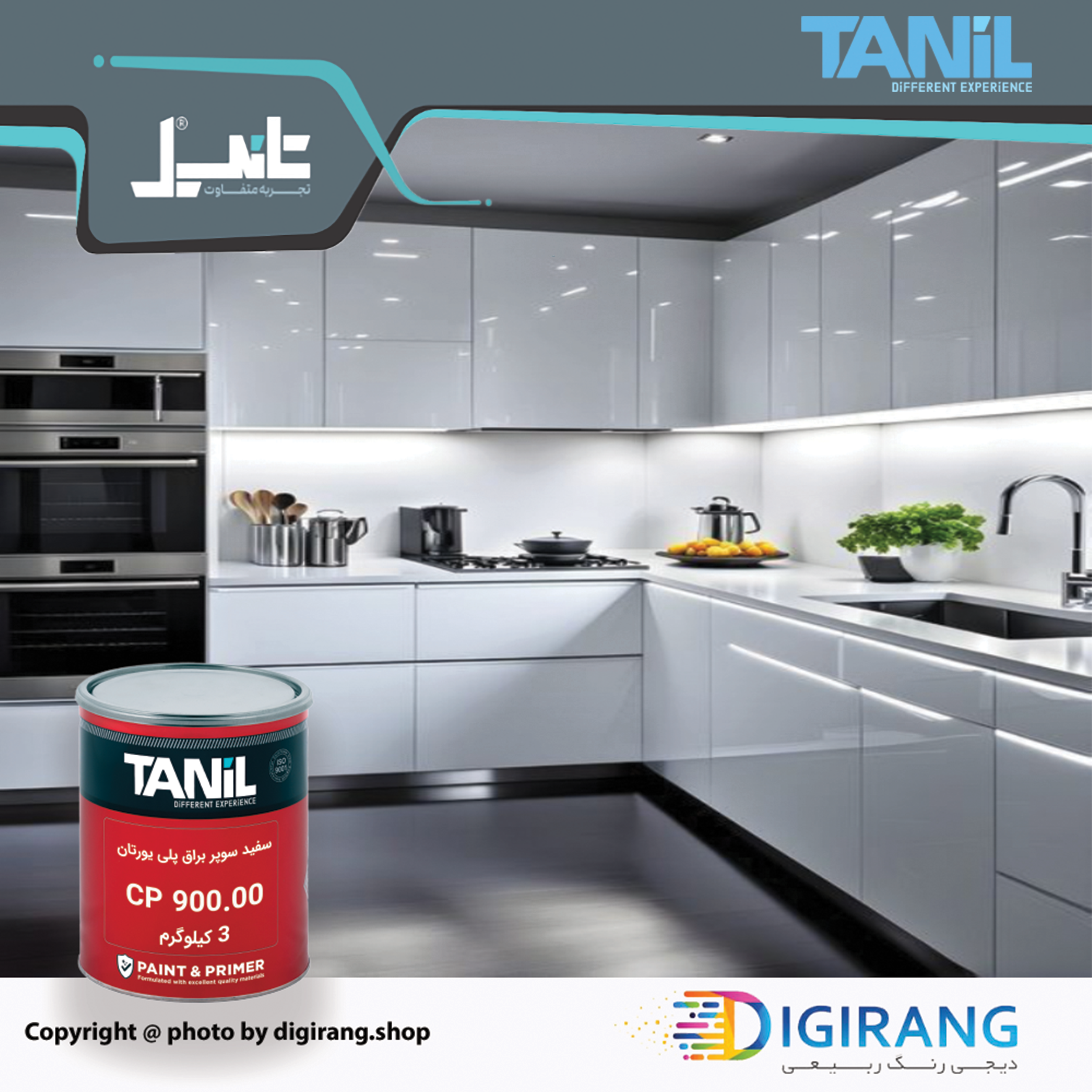 • قابلیت اجرای رنگ به دفعات متعدد و نزدیک کردن ضخامت و براقیت رنگ سفید سوپر براق تانیل TANIL به رنگ پولیشی.
