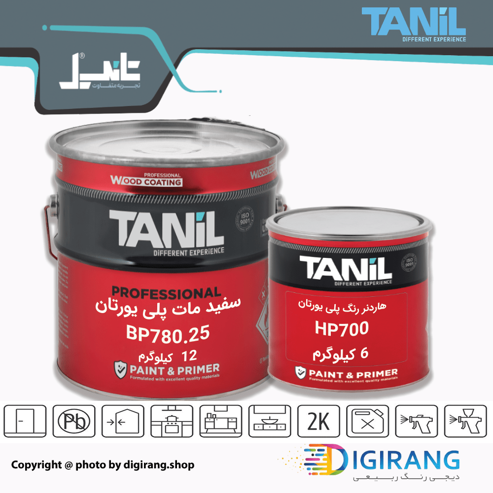 رنگ پلی یورتان سفید مات تانیل TANIL کد BP780.25 به همراه خشک کن 18 کیلوگرم