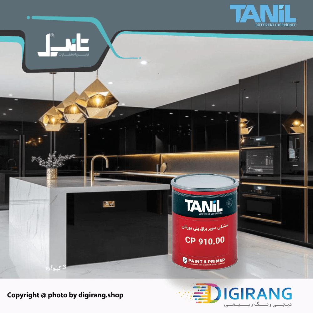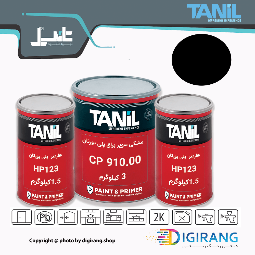 رنگ پلی یورتان مشکی سوپربراق تانیل TANIL کد CP910 به همراه خشک کن 6 کیلوگرم